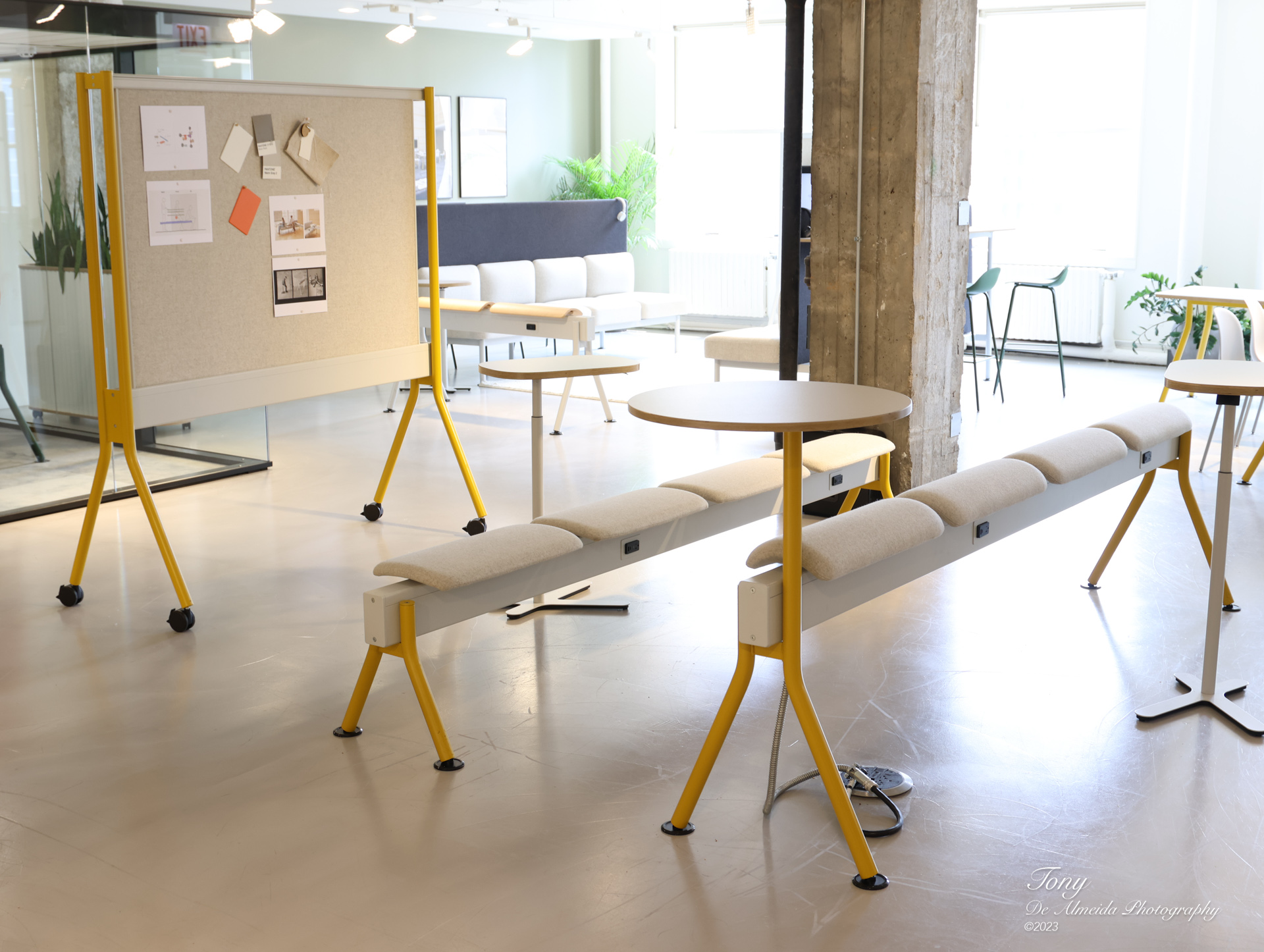 The beam system is impressively versatile; it’s modular, can be powered, and connects seamlessly with various enhancements. There are also useful accessories, like collaboration easels, that make it perfect for agile spaces dedicated to learning, socializing, and teamwork.